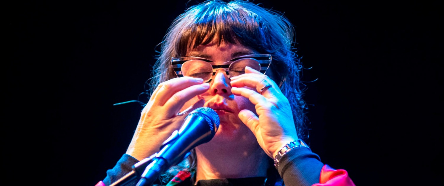 Den Abschluss des Festivals DESIGNING VOICES bildet ein Konzert mit zwei Soloperformances, die den Fokus auf die Erweiterung von Stimmklängen ohne Hinzunahme sprachlicher Mittel legen. Anders als bei den ersten Konzerten am Freitag („Vom Sinn zum Klang“) oder auch am Samstag („Die lange Nacht der kuriosen Stimmen“) steht allein der Stimmklang, ihre Erweiterung und Produktion im Vordergrund der Veranstaltung „Vom Klang zum Sinn“.