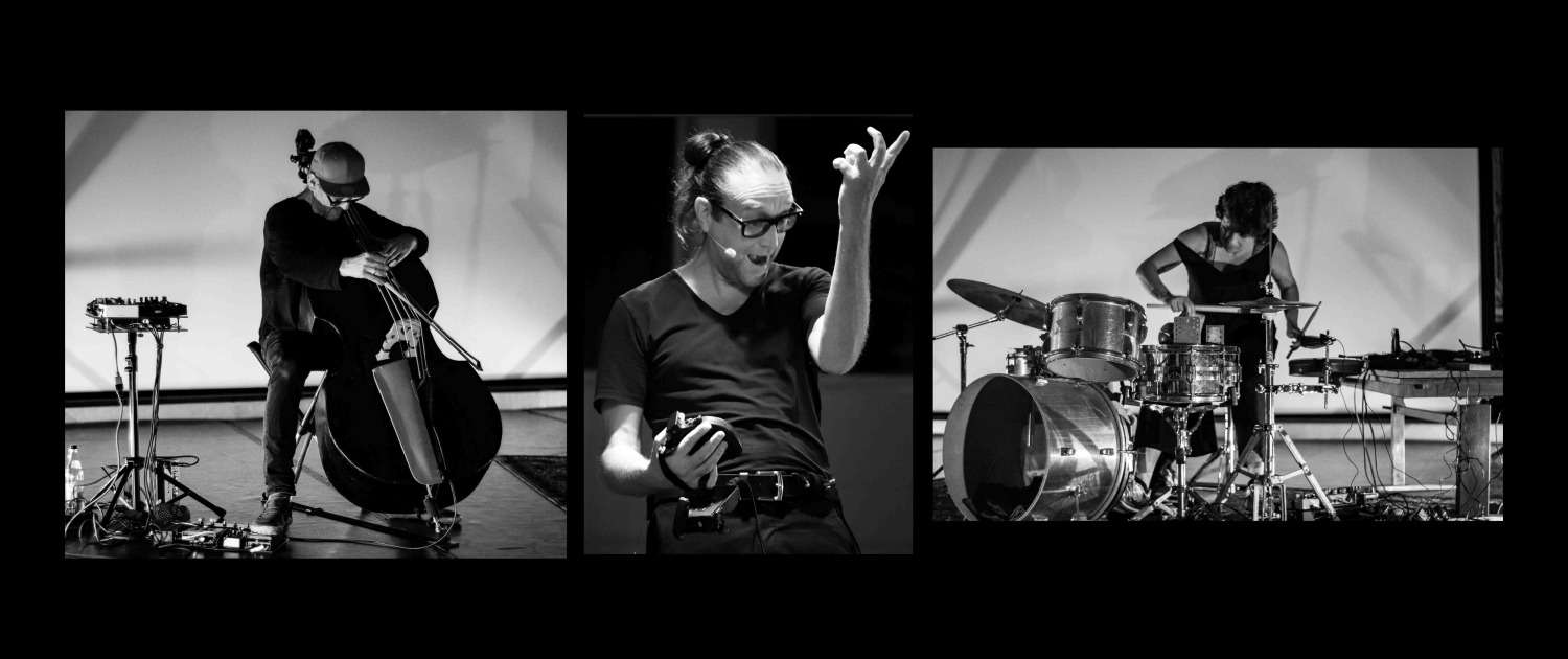 Den Abschluss des Abends bestreitet das Projekt SONIC ALCHEMY meets Alex Nowitz, wo das Duett der aus Portugal stammenden Perkussionistin SOFIA BORGES und des italienischen Kontrabassisten KLAUS JANEK auf den in Potsdam lebenden Stimmkünstler, Elektronikmusiker und Textdichter ALEX NOWITZ trifft. Die improvisatorische Herangehensweise ihrer Klangreise, die sie antreten, ist getragen von der Idee zur Kreation einer im Moment entstehenden kollektiven Komposition, die durch festgeschriebene Texte und Lautgedichte aus Nowitz‘ Sammlung „Haikus & Herotika“ eine Lenkung erfährt, die überraschende Klangfarben heraufbeschwört. Verstärkt wird dieses Konzept dadurch, dass alle drei Musiker:innen ihr jeweiliges Instrumentarium mit einem umfangreichen Elektronik-Setup erweitern. Insbesondere die Stimme von Alex Nowitz in Verbindung mit seiner gestengesteuerten Live-Elektronik, dem Strophonion, setzt sich kritisch mit unseren Hör- und Sehgewohnheiten auseinander.